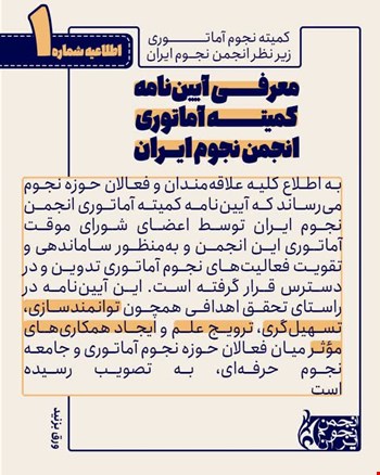 معرفی آییننامه کمیته آماتوری انجمن نجوم ایران
